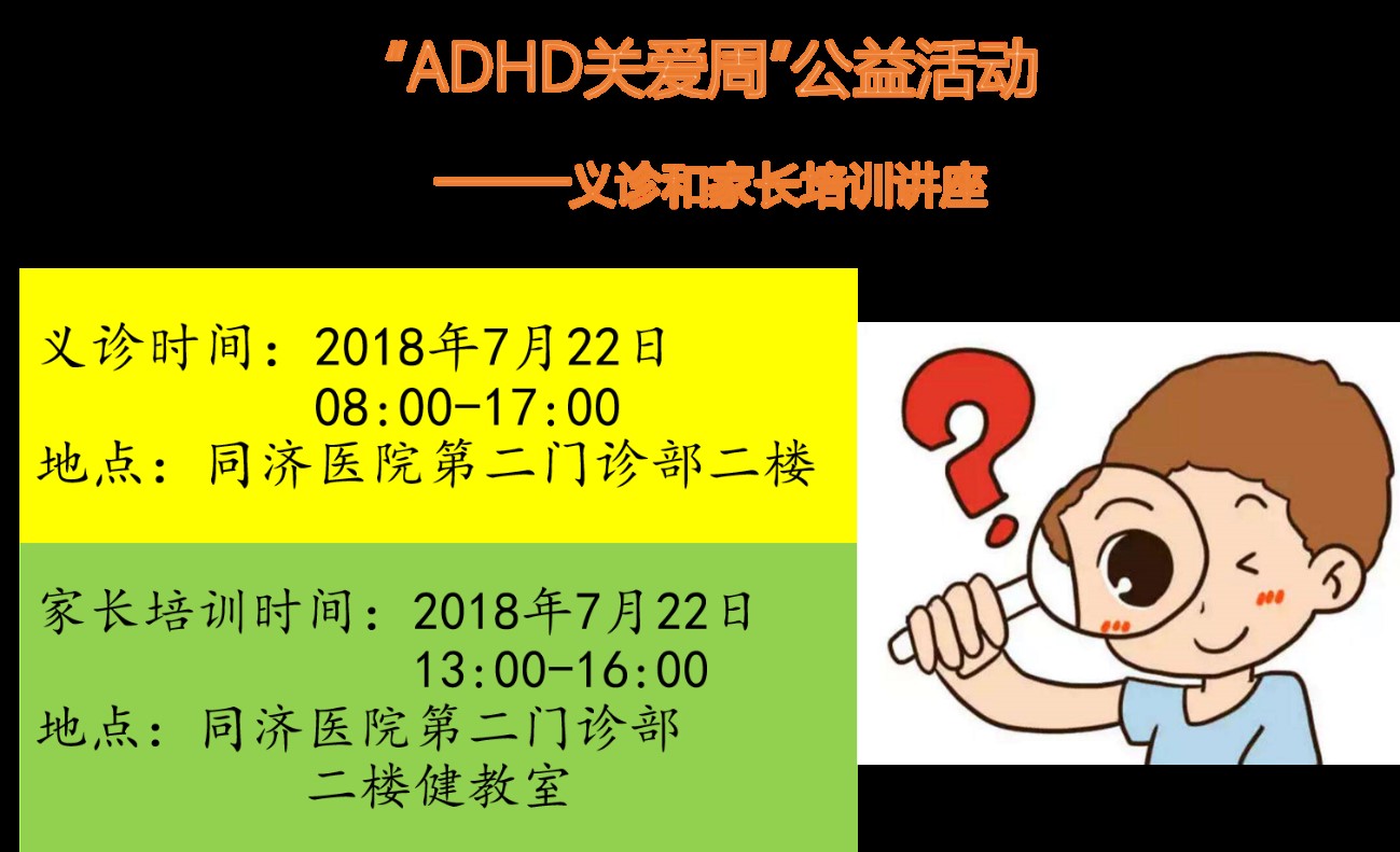 同济医院儿科一直致力于儿童“ADHD”的筛查与诊治,已连续多年举办“关爱周”活动。2018年“ADHD关爱周”活动即将开启,敬请期待!
