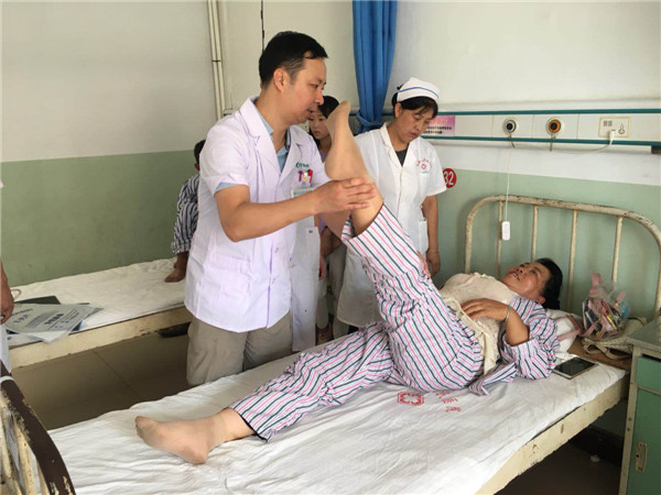 骨科陈文坚副主任医师,对当地医护人员进行骨关节疾病的临床查体现场教学,同时为患者解决实际问题。