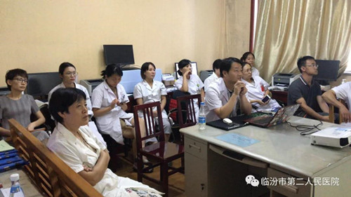 9月4日下午,巡回医疗队的队员们在临汾市第二人民医院举行讲座,吸引了多科室医务人员听讲。
