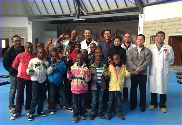 医疗队在孤儿院进行义诊,肖毅(最后一排中间)