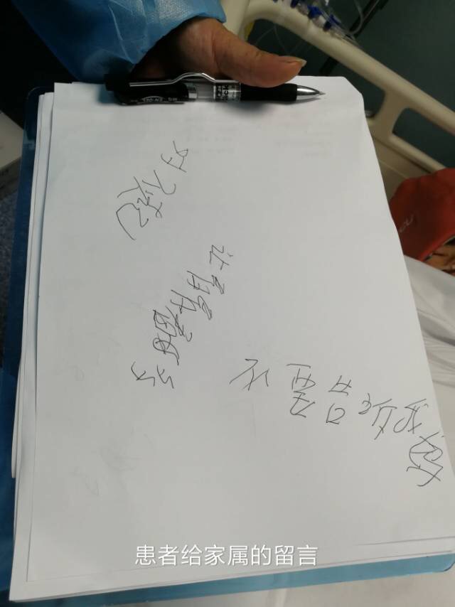 怕清醒过来的梦姚被自己的现状“吓”到,也为了让梦姚能够坚定战胜疾病的勇气,管床护士紧急培训梦姚的丈夫如何做心理疏导。消毒、戴口罩帽子手套、穿隔离衣,丈夫走进入到了重症监护室。“梦姚现在不能说话,但她可以听到你对她说的话,你要引导她写出她现在的担心和需求……”