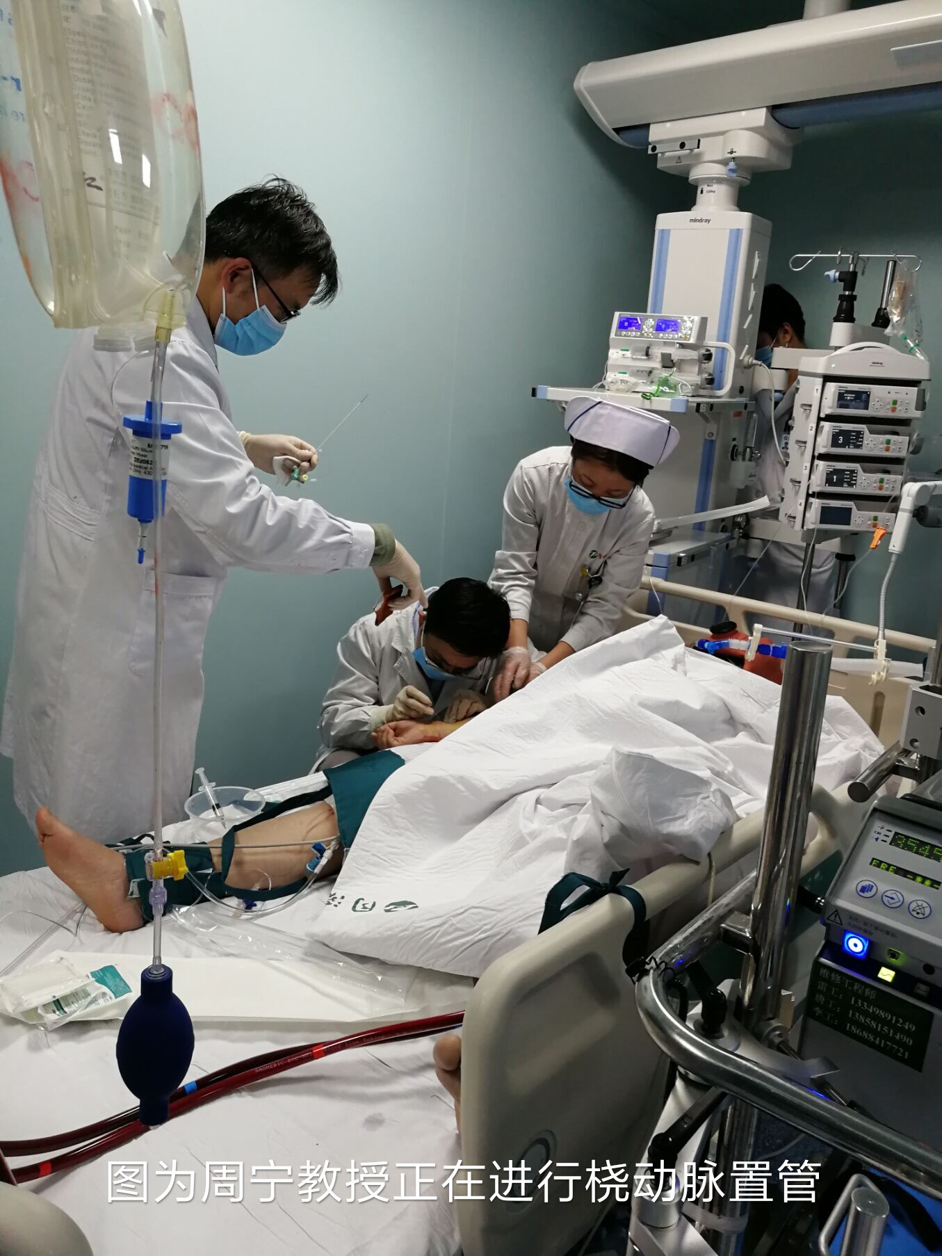 为了动态监测患者血流动力学情况和凝血功能的参数变化,需要进行外周动脉穿刺置管。周宁蹲在床边,仔细摸索着梦姚桡动脉的搏动。平时1-2分钟就可以完成的穿刺,却由于梦姚的血压太低,加之外周血管收缩,几乎完全感觉不到动脉搏动,周宁不由自主地屏住呼吸,好不容易才找准了穿鞘管的“地方”,大家不由长长的舒了一口气。