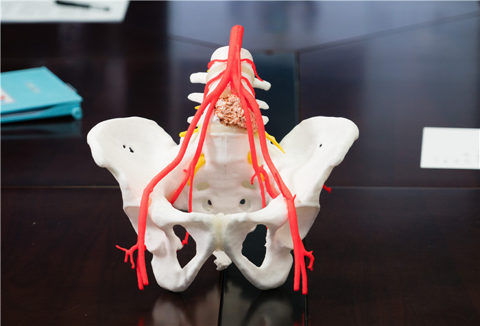 39岁的田先生,是位做装修生意的个体户,一年前开始出现腰部反复疼痛的症状,休息下后疼痛还可以缓解,他就没当回事。过年后感觉疼痛加重,当地医院核磁共振显示腰椎上长了肿瘤,鹅蛋大小,不偏不倚的侵蚀在第五节腰椎上,正是腰椎和骨盆连接部位附近。一听是肿瘤,田先生心慌了,听说脊椎上做手术,不是跛就是瘫。忙来同济医院骨科就诊。