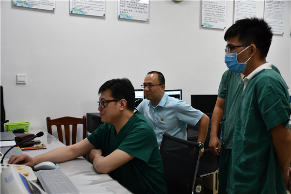 吴菁书记一行还实地到同济文昌医院介入、影像等医技科室和泌尿外科等住院部科室进行调研,同济医院随行牛洪泉、严江涛、黄永建、王波教授分别与各科室人员进行讲课、手术,详细了解科室的新技术新业务的开展情况。