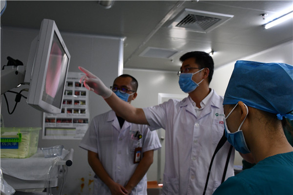同济医院王波教授(右一)到腔镜室指导胃肠镜检查