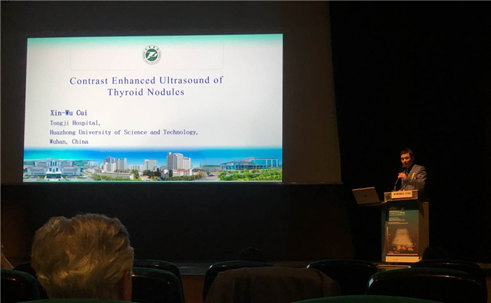 第31届欧洲超声医学与生物学联合会(EFSUMB)年会于2019年5月29日-6月1日在西班牙格拉纳达举行,同济医院超声影像科崔新伍教授受邀在大会的主会场“EFSUMB Meets China”专场做了题为“Contrast enhanced ultrasound of thyroid nodules (甲状腺结节的超声造影)”的演讲,并与在场的国内外专家进行了深入的交流。超声影像科两名博士研究生关于“乳腺超声人工智能”及“肝脏超声造影数据影像报告系统”的论文摘要被大会录用并分别被邀请做报告和发表壁报。