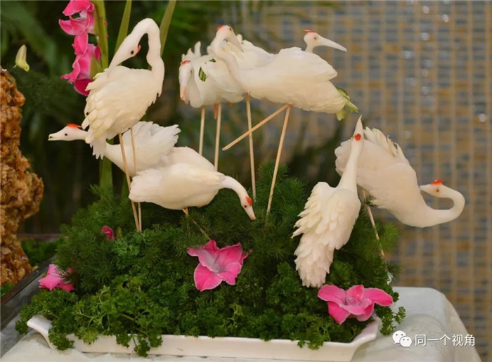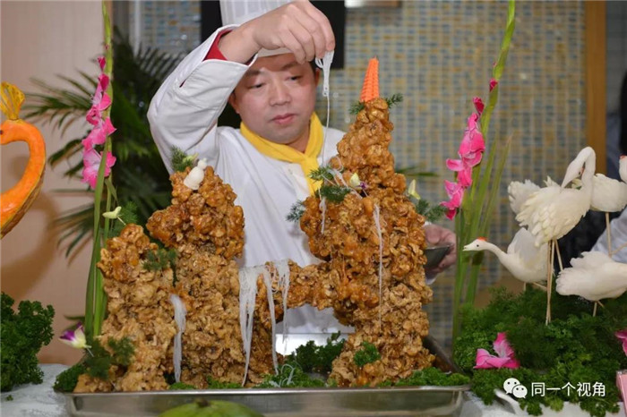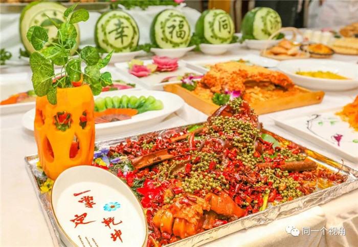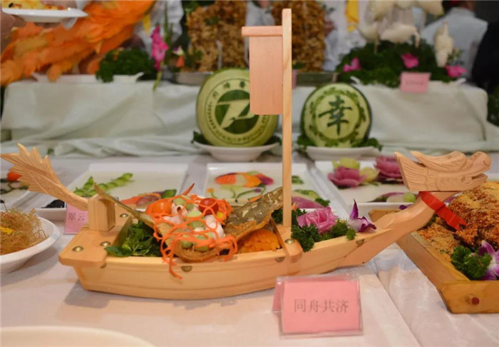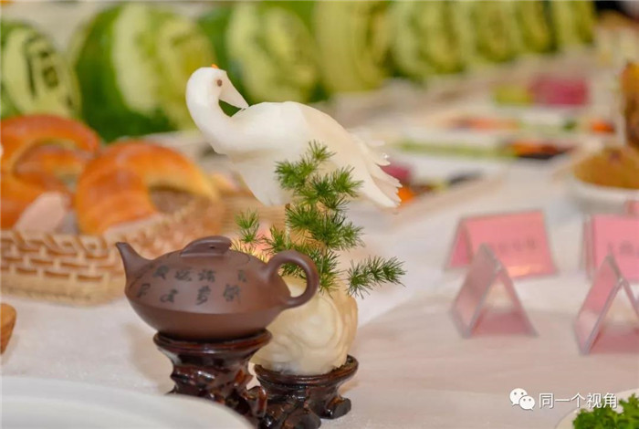 大赛开始后,三位厨艺高手现场展示了切、雕、刻、画等技艺,铿锵有力的斩切声不绝于耳。与此同时,三个代表队在现场和后厨两个分赛场进行着紧张的菜肴制作。随后,15道精心烹制的菜品轮番登场,香飘现场、色夺众目,期间,更有精彩的现场雕花、甩饼技艺表演穿插其中。比赛精彩纷呈,更让在场的每一位嘉宾和观众眉欢眼笑、惊叹不止。
