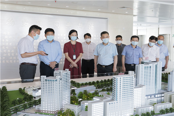 王伟院长向王贺胜同志介绍同济医院建设沙盘
