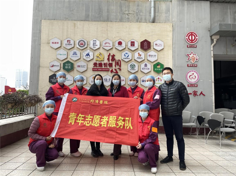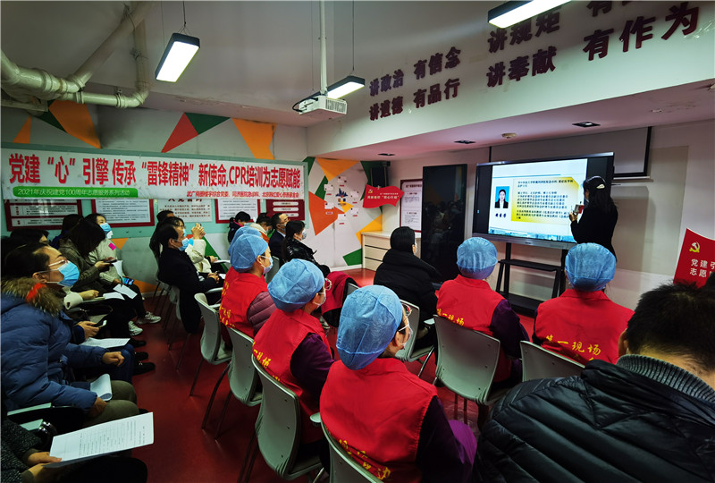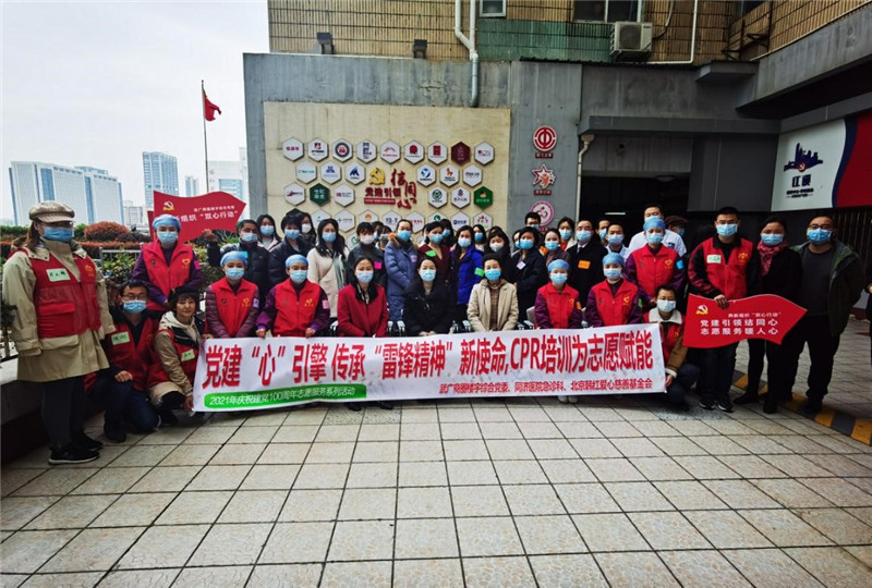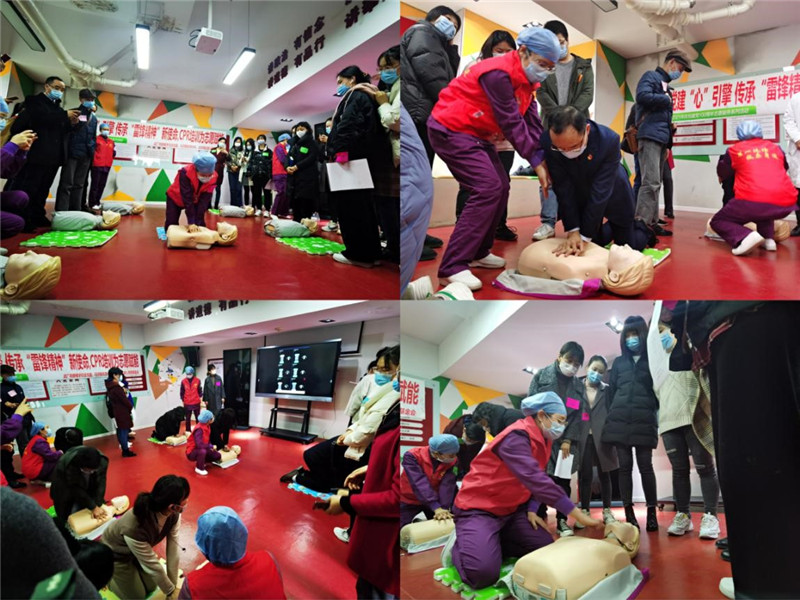 在3月5日学雷锋纪念日来临之际,同济医院团委、社工部和急诊科应武广商圈楼宇综合党委邀请,为其商圈非公企业党支部青年志愿者开展了心肺复苏急救培训及急救知识科普宣教活动。以“传承雷锋精神,助力护航生命”为主题,同济医院急诊科“第一现场‘救’在身边”志愿服务队的党员及青年医护志愿者亲身示范,为大家带来了一场别开生面的CPR实操培训课,50余人参与现场活动,同步直播最高在线观看人数超过6.6万。