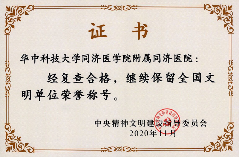 同济医院连续16年保留“全国文明单位”荣誉称号