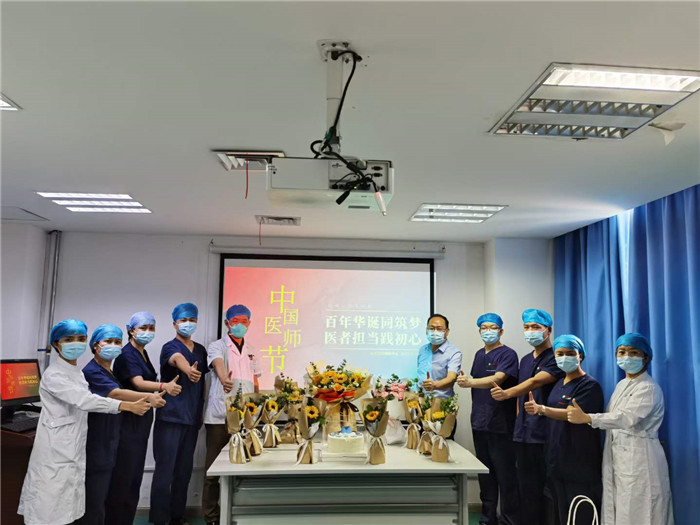 “今天穿着防护服过医师节也很有意义!”当天,同济医院还有15位医护人员坚守在武汉金银潭医院,支援新冠肺炎患者的救治。专家组组长宋建新教授表示,他们将一人一策、精准施治、不辱使命。