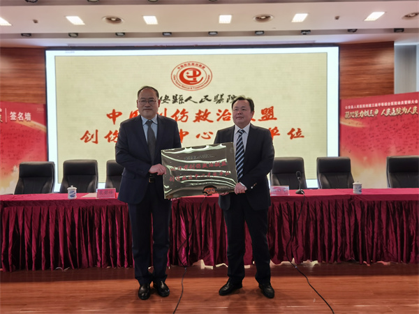 随后,白祥军副院长与公安县卫生健康局党组书记、局长袁碧峰共同签署医联体协议,与公安县人民医院党委书记、院长朱道平共同完成中国创伤救治联盟、湖北省创伤救治联盟“创伤救治中心建设单位”授牌。