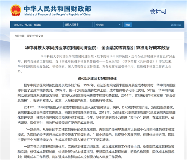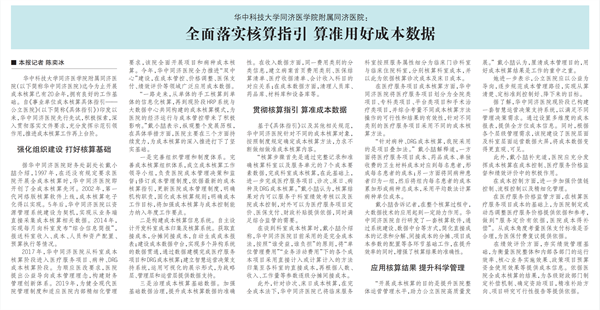 华中科技大学同济医学院附属同济医院: 全面落实核算指引 算准用好成本数据