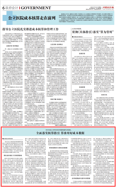 华中科技大学同济医学院附属同济医院(以下简称华中同济医院)迄今为止开展成本核算已有20余年,拥有良好的工作基础。自《事业单位成本核算具体指引——公立医院》(以下简称《具体指引》)印发以来,华中同济医院先行先试,积极探索,深入贯彻落实文件要求,充分发挥示范引领作用,推进成本核算工作再上台阶。财政部网站、中国会计报均报道了其经验做法。