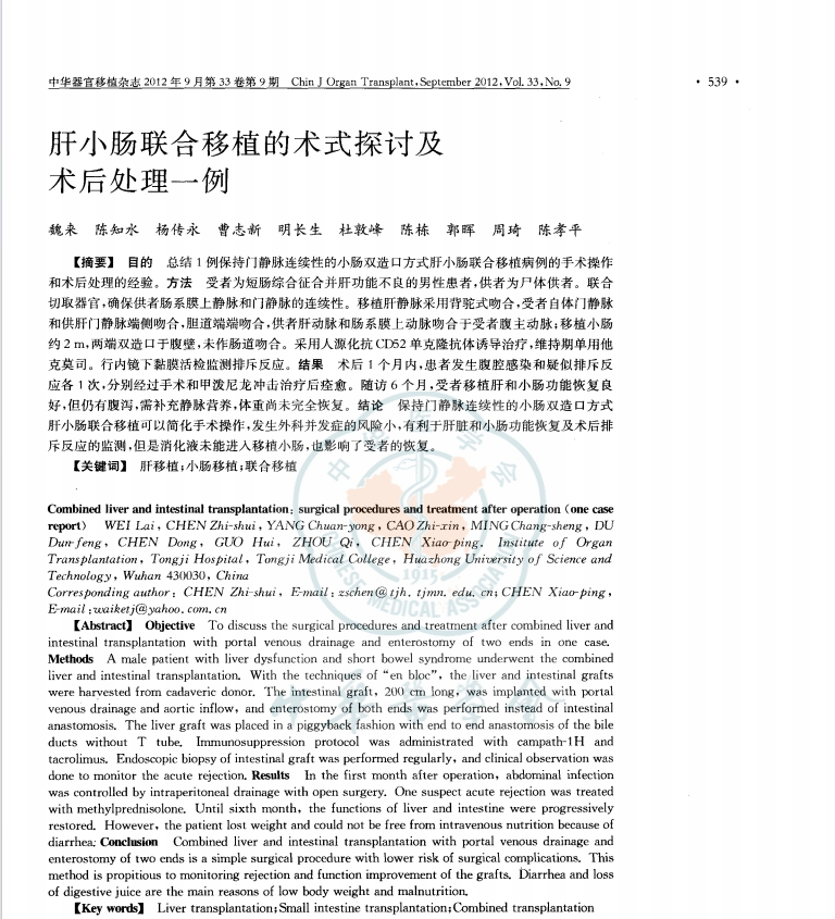 2012年,华中科技大学同济医院成功完成中南地区首例肝小肠联合移植。目前,病人恢复良好。如今,三十而立的他在朋友圈晒出两个娃并许下了“愿一切都好”的心愿。