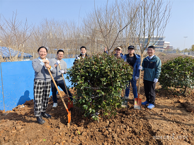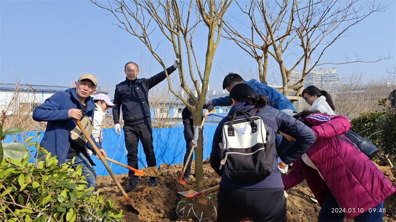 一个多小时的时间,大家接连种下桂花、紫薇、红叶石楠、樱花等不同品种的158颗树苗,在春日暖暖的阳光中,一株株精神抖擞的新树苗盎然挺立,传递着春的生机,彰显出蓬勃的生命力。