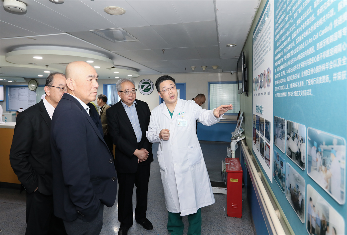 会谈结束后,代表团在心脏大血管外科主任魏翔教授带领下前往心脏大血管外科进行参观和交流。魏翔教授详细介绍了由他团队原创的经心尖心脏不停跳室间隔心肌切除术。该手术深度融合了以超声心动图为核心的现代多模式影像学诊疗方式,极大提高了治疗效率及疗效。该术式将原本需要开胸体外循环心脏停跳且至少4小时才能完成的大手术,变成仅需1小时即能完成的心脏不停跳的微创小切口手术。代表团观摩完手术视频后,对魏教授全球首创术式表示钦佩,现场展开了热烈的交流,并殷切邀请魏教授团队前往香港港安医院进行交流。