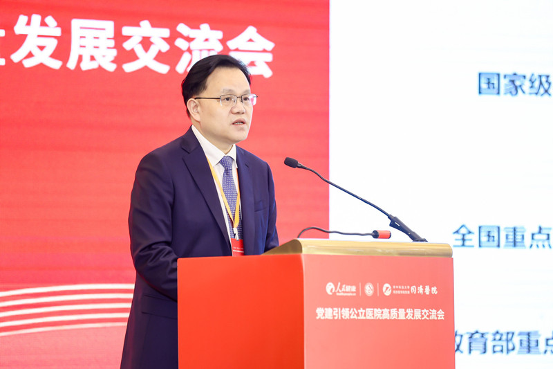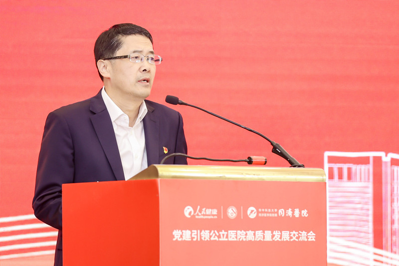 湖北省卫生健康委员会副主任邓小川致辞。他说,公立医院是医疗服务体系的主体,是健康中国建设的主力军。湖北省卫健委始终坚持和加强党对公立医院的全面领导,全力推动公立医院高质量发展。他希望通过本次交流学习,参会单位认真借鉴兄弟单位的好经验好做法,以进一步加强公立医院党的建设为抓手,全面推动湖北卫生健康事业高质量发展。