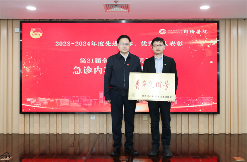 党委书记唐洲平为第21届二星级全国青年文明号获得单位急诊内科授牌