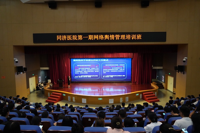 6月20日晚,同济医院在行政楼3楼举行2024年第一期网络舆情管理培训班,邀请湖北广播电视台总编室副主任李小芳进行授课,各基层党组织宣传委员、各临床医技科室护士长、门诊部办公室、医务处、财务处、医保办、药学部窗口和保卫处等800余名学员参加此次培训,党委宣传部谢雪娇主持此次培训,党委副书记廖家智作总结发言。