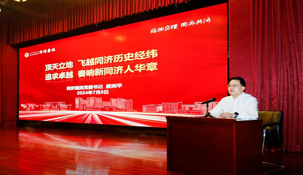 为做好新职工思想政治教育工作,唐洲平亲自为新职工讲授“新职工思政第一课”,以“顶天立地,飞越同济历史的经纬;追求卓越,奏响新同济人的华章”为主题,近一个小时的讲课内容丰富厚重、特色鲜明、针对性强。唐书记为新职工讲述了同济自1900年始124年创业史,不仅成就了同济的辉煌历史,同时形成了“格物穷理,同舟共济”的同济院训,“严谨求实、开拓创新、一心赴救、精益求精”的同济精神,“与国家同舟,与人民共济”的价值理念,这些都是同济文化的血脉和基因,成为历代同济人的价值追求和行为规范。经历三次创业,同济医院的发展也迈入了新时代新阶段。此刻,同济医院高质量发展的蓝图已经绘就,第四次创业的新征程风帆正举,正是需要全体同济人激励奋发的时刻。唐洲平表达了对新职工们的衷心祝贺与殷殷嘱托,鼓励新职工牢记同济院训,延续同济精神,秉持同济价值理念,做好同济文化传承。