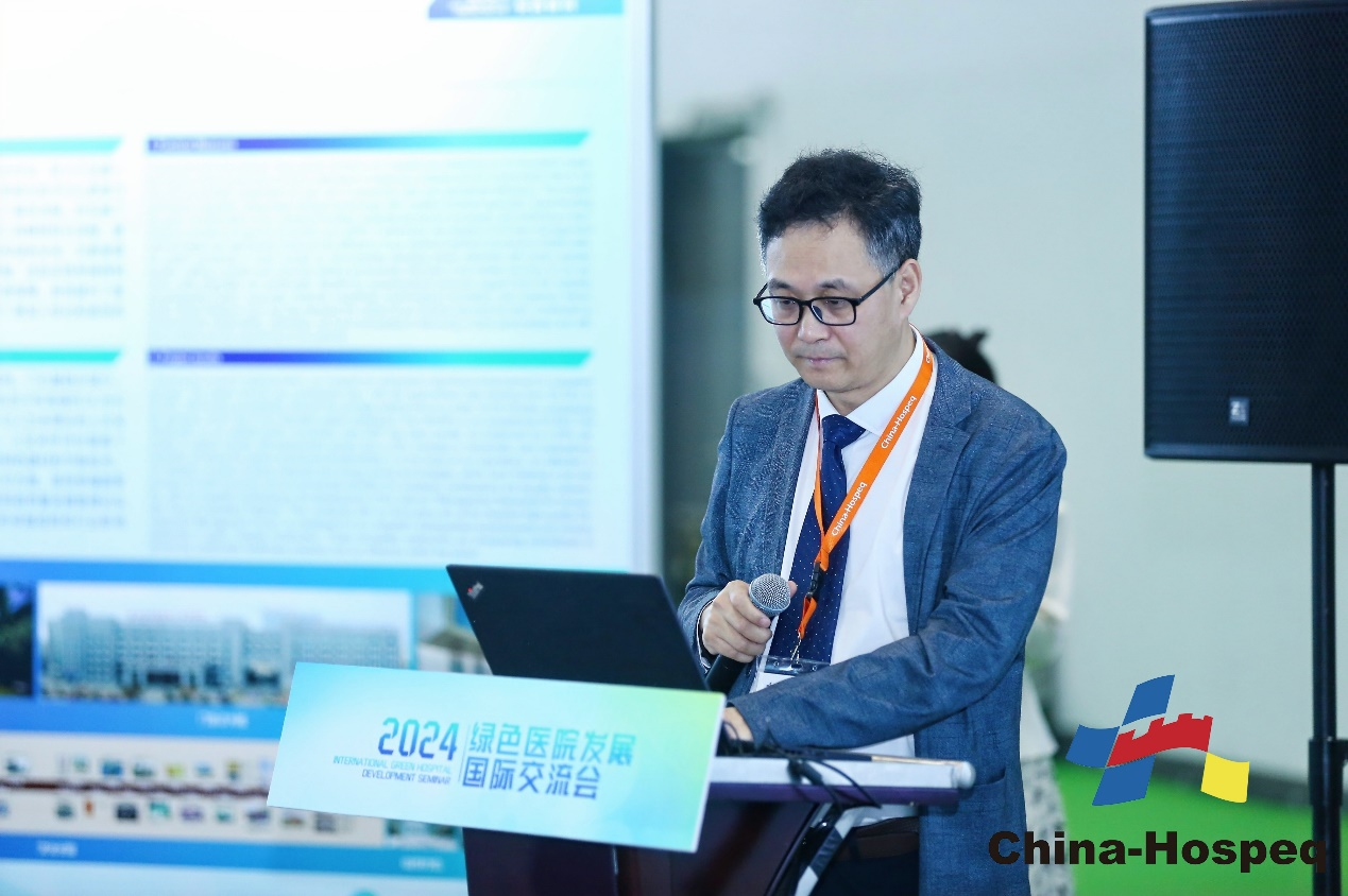 曾晓勇的分享涵盖了中法新城院区绿色健康设计背景、可持续发展节能举措、科学高效管理工具应用以及绿色医院建设丰硕成果。他说,同济医院中法新城院区整合了医院高质量发展理念、全生命周期绿色管理方法,为推动我国绿色医院转型发展,助力健康中国建设,提供了“同济经验”。