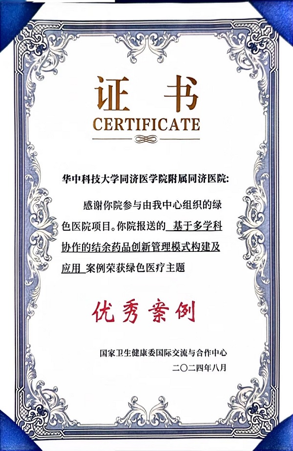 同济医院结余药品管理实践荣获国家卫生健康委 “绿色医疗主题”优秀案例