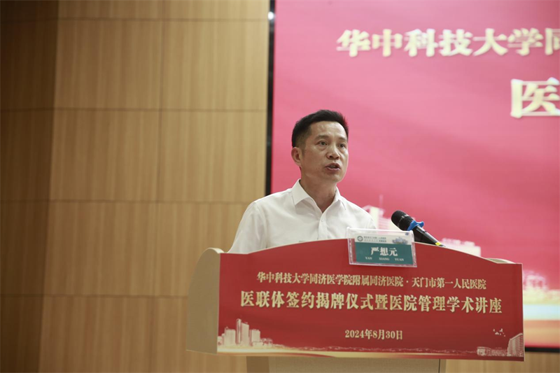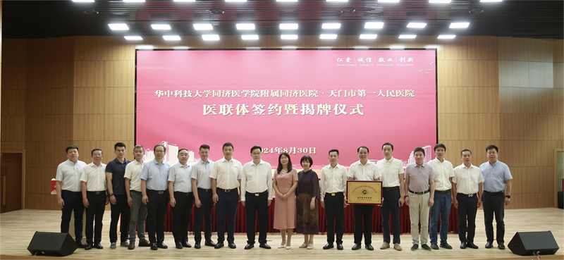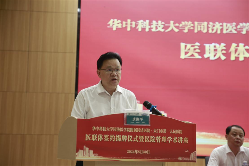 8月30日,同济医院党委书记唐洲平带队赴天门参加同济医院与天门市第一人民医院医联体签约揭牌仪式。