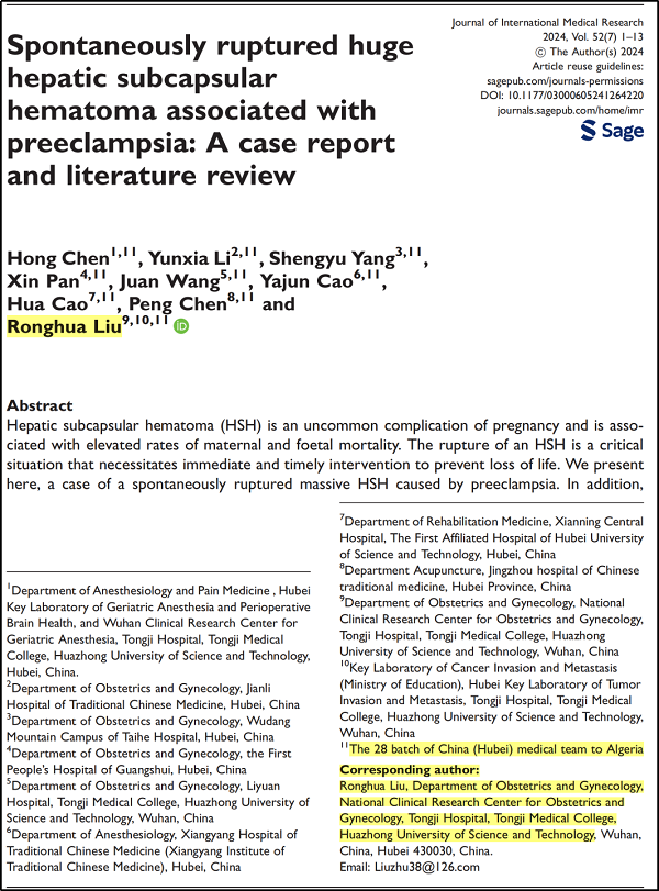 他们将处理肝包膜下血膜破裂的经验写成了论文,并把全球内该疾病的发病情况以及处理方法进行了全面综述,论文近期已发表在国际期刊J Int Med Res上,这也是援外医疗队首次将阿国病例的救治过程以论文成果的形式呈现于全球学术界。