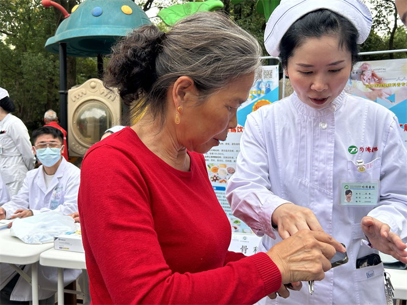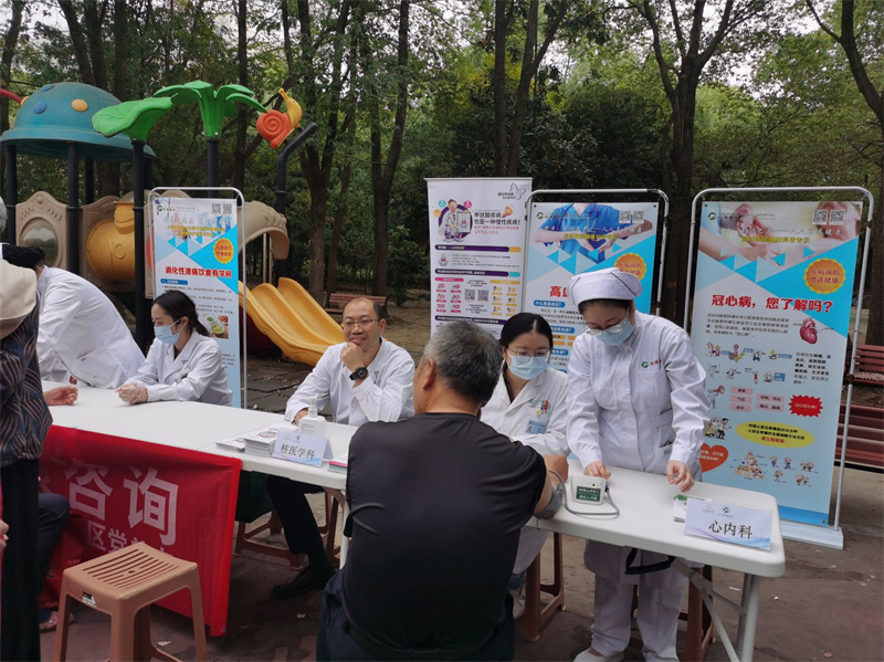 活动当天,许多社区老年人来到现场,医护人员为老人们测量血压、血糖,进行心肺功能检查,并耐心解答他们的健康问题。针对秋季易发的各种慢性病,医护人员进行了详细地讲解,强调预防心脑血管意外、养护肠胃以及调理情绪的重要性。同时,活动中还结合中医理论,向老人们介绍了秋季养生的原则,提出了增加营养、适量运动、合理穿衣等科学建议。通过讲解,老人们了解到秋季养生不仅要注意气候变化,更要从饮食、生活作息、情绪管理等方面综合调理,保持健康的生活习惯和积极向上的心态。