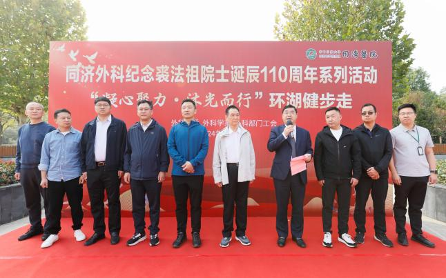 11月2日,为纪念裘法祖院士诞辰110周年,传承和弘扬裘法祖院士的崇高精神,丰富职工的精神文化生活,同济医院外科党委、外科学系、外科部门工会在中法新城院区风景秀丽的后官湖环湖绿道上,成功举办了“凝心聚力 沐光而行”环湖健步走活动。此次活动吸引了来自外科学系、器官移植、手术室、麻醉科的300余名职工及其家属的热情参与。同济医院外科学系主任、中国科学院院士陈孝平教授,同济医院院长胡俊波教授等领导及部分职能部门负责人参加活动。
