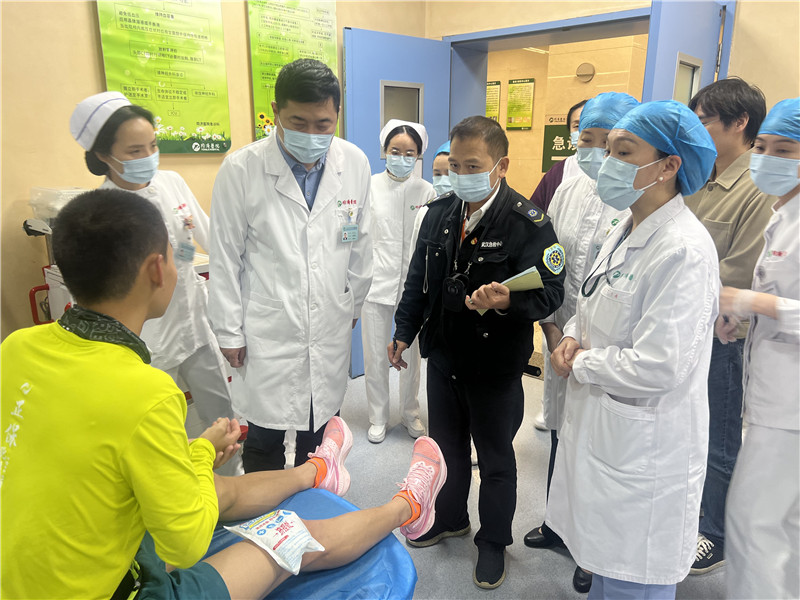 为了保障好这场获得中国田协A1类认证的全马赛事,同济医院领导高度重视,组织相关科室派出医务人员60余人参与院外救治,准备盐酸肾上腺素、硝酸甘油注射液等多种抢救药品共计24种,及心电监护仪、球囊面罩、轮椅等仪器设备共计31种;组织院内200余名医护技、药学、行政、财务、后勤、保卫等部门人员参与院内急救保障,从开展应急演练、强化人员配置、优化环境布置和做好物品准备等方面保障急诊“绿色通道”畅通,保证心肺复苏机、呼吸机和除颤仪等抢救仪器、设备和物资都处于备用状态。