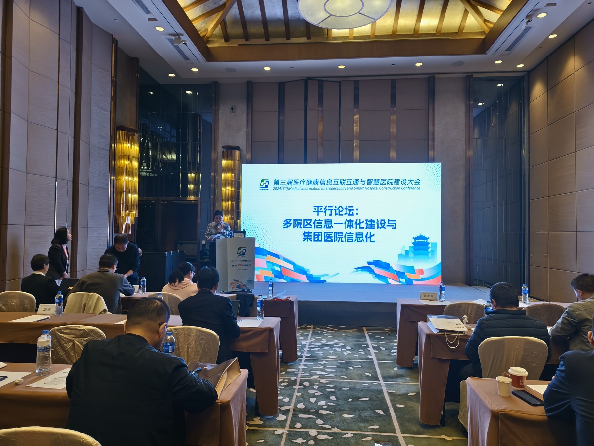 在大会平行论坛环节,同济医院信息管理科科长汪火明主持“多院区信息一体化建设与集团医院信息化”平行论坛。