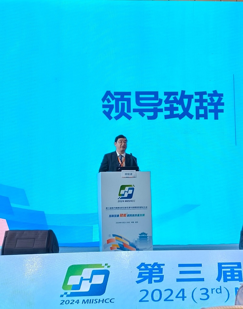同济医院院长胡俊波出席大会开幕式并发表致辞。胡俊波指出,互联互通不仅是提升医疗服务效率的关键,更是实现智慧医院建设的重要基石。本次大会旨在汇聚行业智慧,共同探讨如何通过互联互通技术迭代更新,促进医疗信息化企业转型升级,激发医疗信息化行业创新活力,改善医疗服务体验,优化医院管理机制,助力医院高质量发展稳步推进。在主论坛演讲环节,胡俊波在大会主论坛做题为《信息互联互通助力智慧医院建设》报告。
