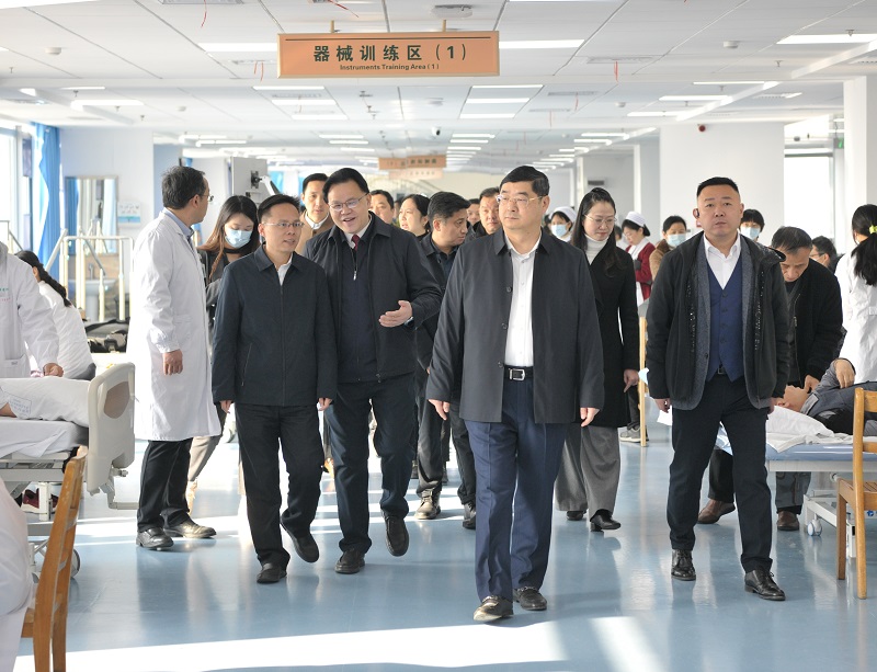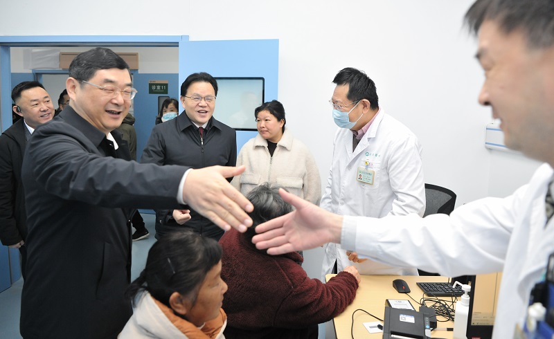上午9时,同济医院党委书记唐洲平、院长胡俊波、党委副书记廖家智等一行人前往军山创新基地,对参与义诊的专家表达了深切的慰问和衷心的感谢。随后,他们深入康复医学科、综合病区等临床科室,了解军山创新基地启用一年的运行情况,并对一线医务工作者们辛勤付出表示了诚挚的感谢。同时,武汉经开区管委会副主任王丰伟和卫健局局长张莉也来到义诊现场,向同济医院的医务人员致以诚挚的谢意。
