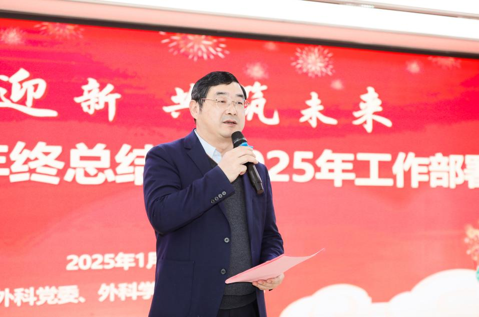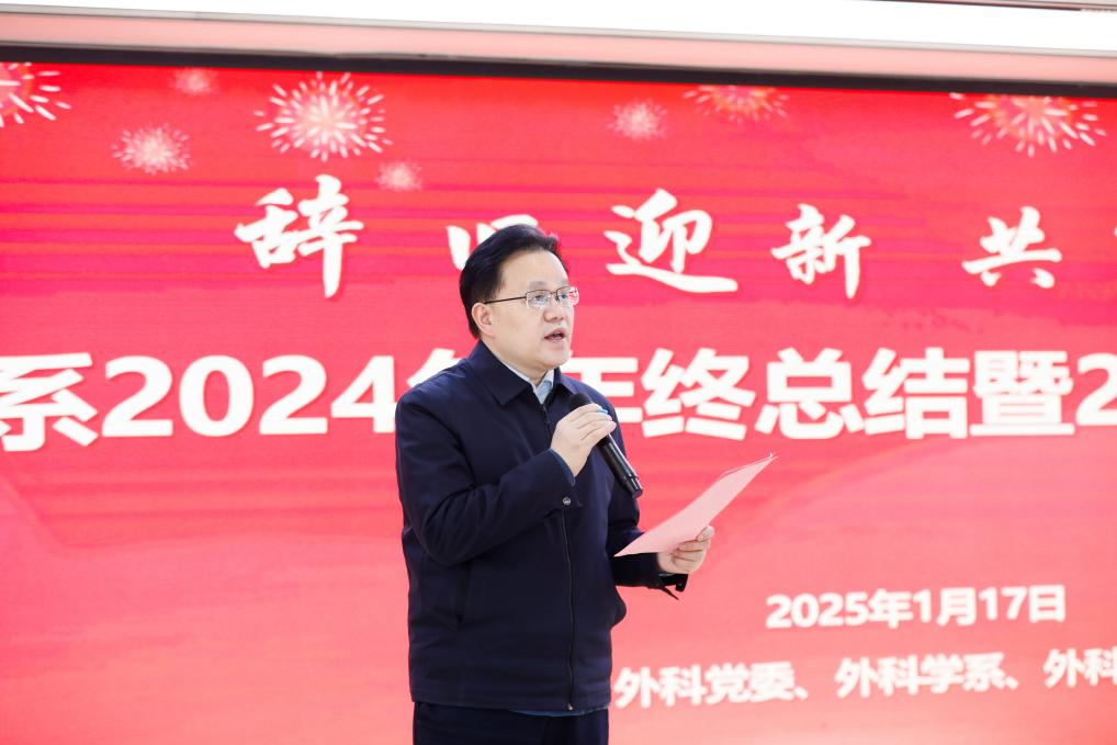 外科学系副主任付向宁教授对外科学系2024年的医疗、教学、科研等工作进行了全面回顾。他代表外科学系表示,2025年外科学系要坚持党的全面领导,深入贯彻“全面医疗质量提升行动计划”要求,不断加强新技术新业务的开展,为医院高质量发展增砖添瓦。