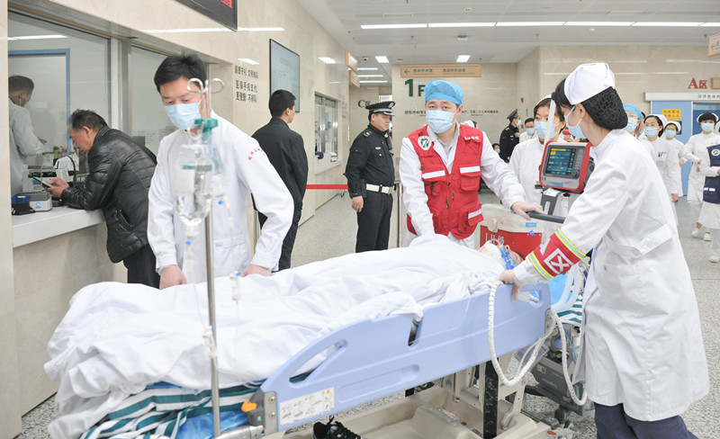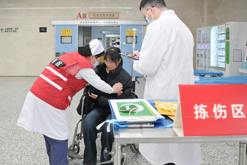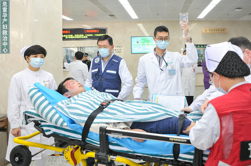 同济医院廖家智常务副院长担任此次演练总指挥,急诊与重症医学科、创伤外科、手术室、院感、放射科、检验科、超声科、输血科、药学部、支助中心、保卫科、后勤等联合参与演练。