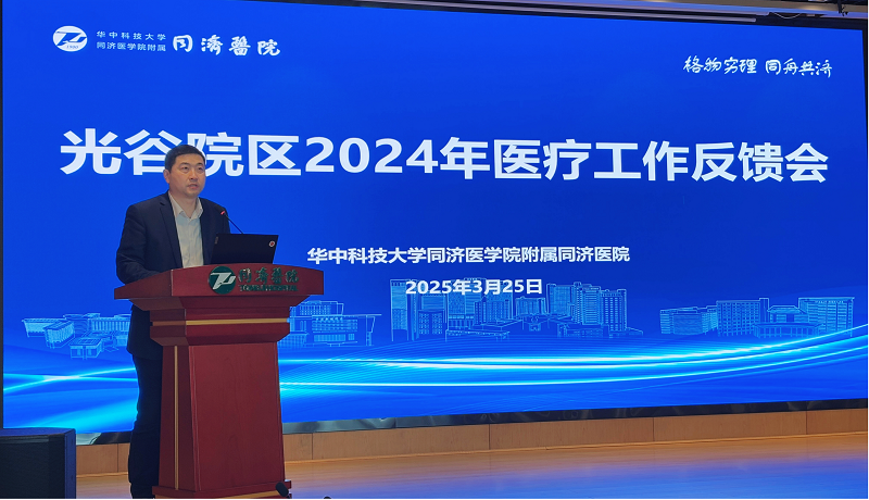 3 月 25 日,同济医院光谷院区在 C3 区 10 楼学术报告厅召开了 “2024 年医疗反馈会暨 2025 年医疗工作计划汇报会”。此次会议全面回顾了光谷院区 2024 年医疗工作的丰硕成果,并对 2025 年的高质量发展任务进行了细致部署。同济医院副院长祝伟,光谷院区副院长张华楸、周琦,院区各临床、医技、职能部门负责人共计 80 余人参与了本次会议。会议由张华楸主持,祝伟作总结发言。