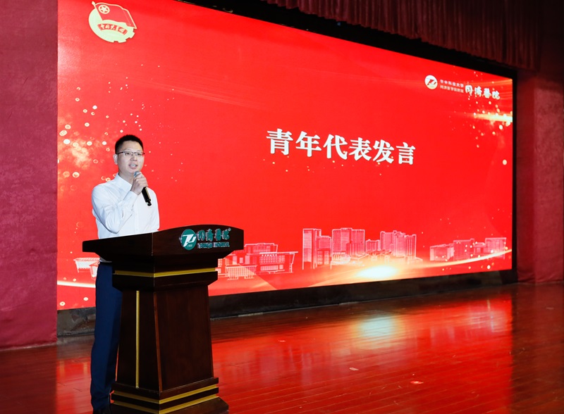 第四届全国卫生健康行业青年志愿服务项目大赛金奖团队骨干成员、院青年五四奖章获得者邓元俊作青年代表发言。他分享了守护血管通路青年志愿服务队七年如一日深入基层开展健康公益行,普及“血管地图”,助力透析患者回归社会、积极面对人生的感人事迹和青年担当。