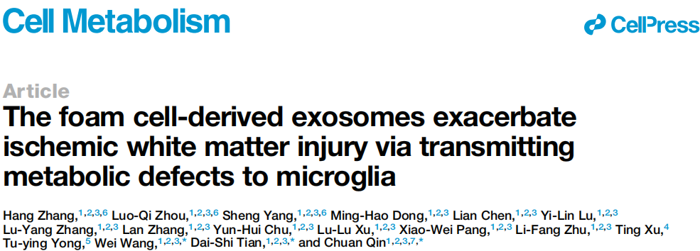 5月8日,华中科技大学同济医学院附属同济医院秦川教授团队在国际知名学术期刊《细胞代谢》上发表论文,揭示了动脉粥样硬化促进脑白质损伤及认知功能障碍的致病机制,为动脉粥样硬化人群血管性认知功能障碍的防治策略提供新视角。