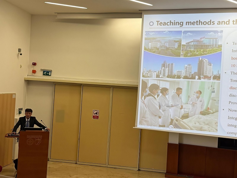 会议期间,我院中西医结合科副主任医师、雅西医药大学中医孔子学院中医教师许啸虎围绕“中医药在罗马尼亚医学院教育体系中的融合与实践”作了专题报告。他介绍了雅西医药大学中医孔子学院开展“中文+中医”教学模式的实践和教学成果,并结合实际教学案例,分享了开展中医特色教学的具体经验与策略,获得与会嘉宾的广泛关注和认可。