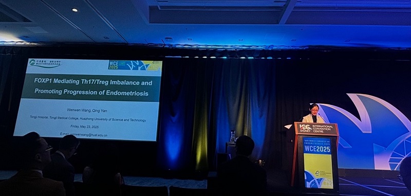 华中科技大学同济医学院附属同济医院普通妇科副教授、副主任医师汪雯雯及其团队成员硕士研究生颜庆受邀参加中澳专场学术报告。5月23日,汪雯雯在大会主会场进行了题为《FOXP1 Mediates Th17/Treg Imbalance and Promotes Progression of Endometriosis》(FOXP1介导Th17/Treg失衡并促进子宫内膜异位症进展)的口头汇报,引起国际同行的高度关注。