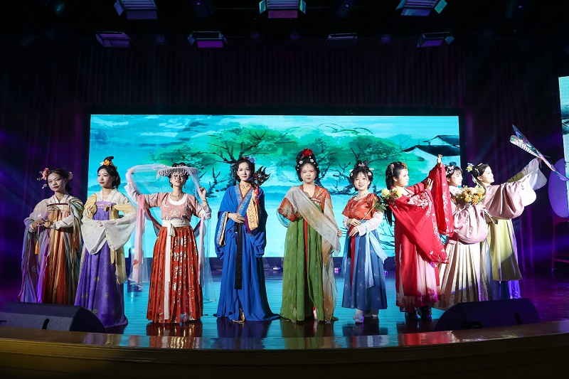 晚会在器乐演奏《霜剑鸣》中震撼开场,古韵悠悠,剑气凌霄,诉说着青年学子初入杏林的澎湃心潮;《云裳》走秀用流光溢彩的汉服将中华服饰之美娓娓道来,展现文化自信;越剧表演《四美咏月》则以婉转唱腔与细腻身段演绎古韵,风雅无限;创意视频《医路缤纷》,将医学生在求学路上的执着、迷茫与梦想娓娓道来,真挚的情感与温暖的画面令人动容,为晚会注入厚重而深情的人文底色。