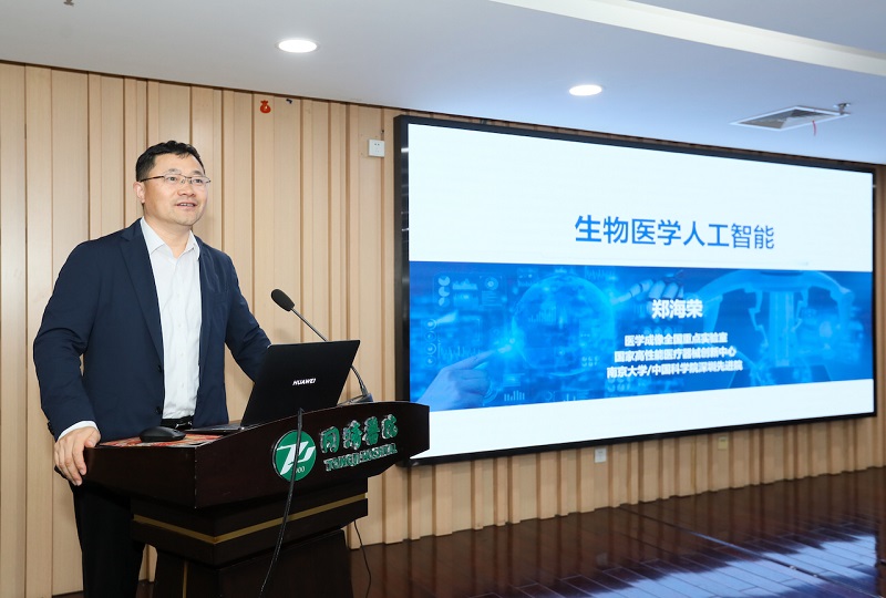郑海荣从战略科学家的高度,发表了《生物医学人工智能》的精彩演讲。他指出,当下人类将步入 “人工智能时代”,这是一场基于人工智能、物联网、区块链和生命科学等创新技术的范式变革。在这场变革中,人工智能正有力带动生物医学技术的革新,其在医学影像、药物筛选、脑机接口、多尺度精准诊断、医疗器械和智能康复等六大方向展现出巨大潜力。郑海荣还前瞻性地预测,未来AI将从数据智能、物理智能逐步迈向生物智能,开辟更为广阔的发展空间。