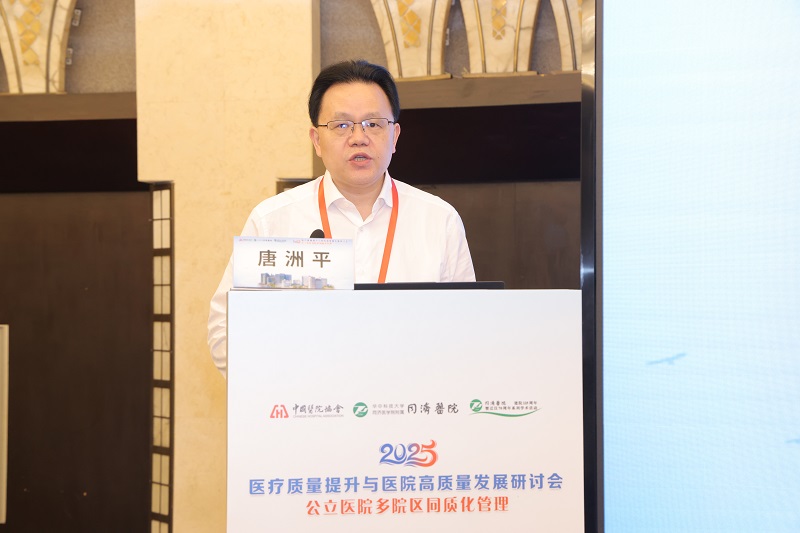 唐洲平在致辞中指出,“一院多区”是公立医院高质量发展的重要方向,同济医院自2013年启动多院区建设,率先推行“一体化管理,同品质医疗”模式,实践成果显著,形成了具有示范意义的“同济模式”。