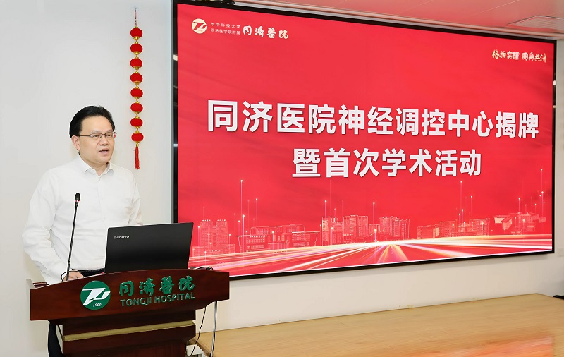在与会人员的共同见证下,唐洲平、胡俊波、雷霆、蔡胜安共同为“同济医院神经调控中心”揭牌。此次揭牌标志着同济医院在神经调控领域迈入了多学科协作、精准化治疗的新阶段。未来,同济医院将携手各方力量,共同推动神经调控技术的发展,为患者带来更多希望。