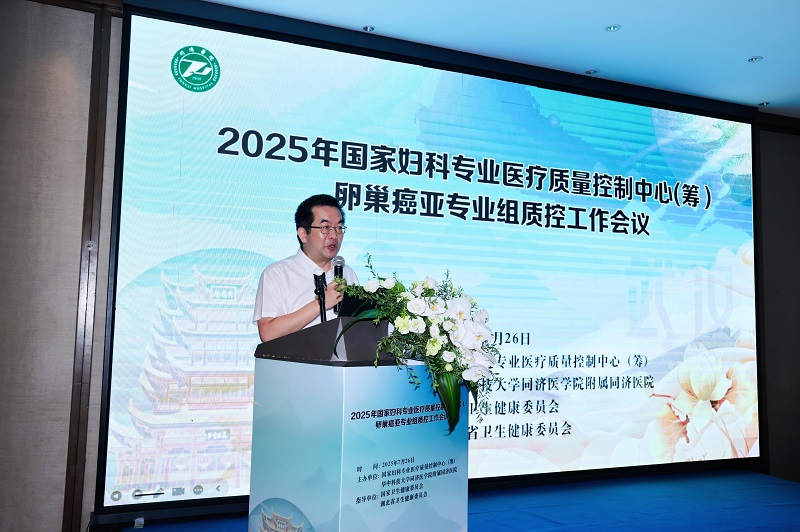 2025年7月26日,国家妇科专业医疗质量控制中心(筹)卵巢癌亚专业组工作会议在武汉召开。会议由国家卫生健康委、湖北省卫生健康委指导,国家妇科专业医疗质量控制中心(筹),华中科技大学同济医学院附属同济医院主办。同济医院党委书记唐洲平、湖北省卫健委医政处处长魏伟、国家妇科质控中心(筹)主任马丁院士出席会议,同济医院副院长吴剑宏主持开幕式。卵巢癌亚专业组专家委员会全体委员,以及质控中心(筹)办公室主任、秘书等参加会议。