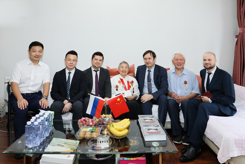 8月6日上午10点,俄罗斯驻武汉总领事馆总领事扎沃林希一行,代表俄罗斯联邦总统及俄罗斯驻华大使馆,向为苏联卫国战争作出贡献的同济医院蔡转教授,颁发“伟大卫国战争胜利80周年”纪念奖章。武汉市人民政府外事办公室李军副主任、同济医院副院长祝文涛参加颁奖活动。