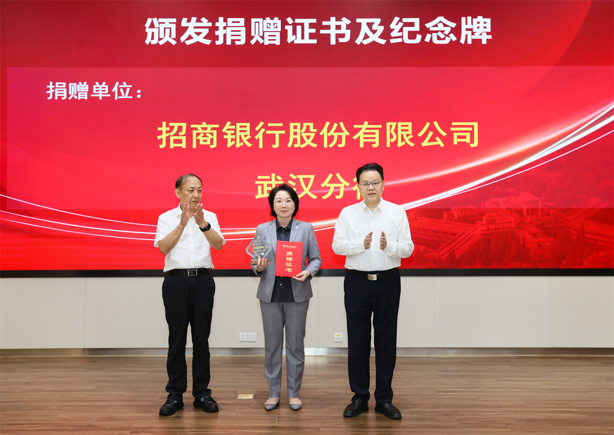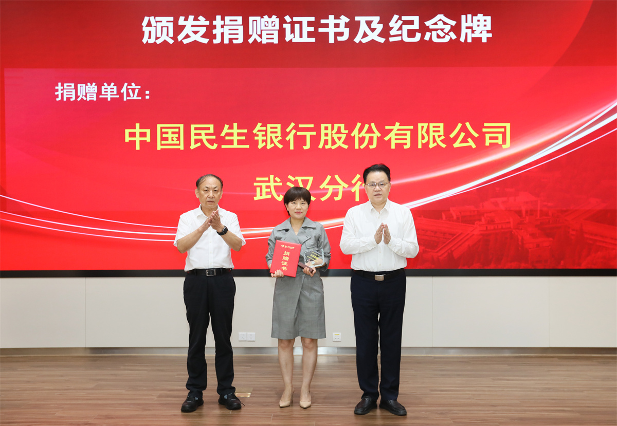 招商银行武汉分行、民生银行武汉分行、武汉云济同联科技服务有限公司、沈阳三生制药有限责任公司、武汉弘翊真泰技术服务有限公司、江苏恒瑞医药股份有限公司等9家捐赠企业依次举牌捐赠,湖北省民政厅二级巡视员、湖北省慈善总会驻会副会长兼秘书长彭文洁,湖北省财政厅二级巡视员、社会保障处处长廖学东,湖北省卫生健康委员会财务处处长王劲松,同济医院党委书记唐洲平, 同济医院院长胡俊波为捐赠单位颁发捐赠证书并赠予纪念牌。