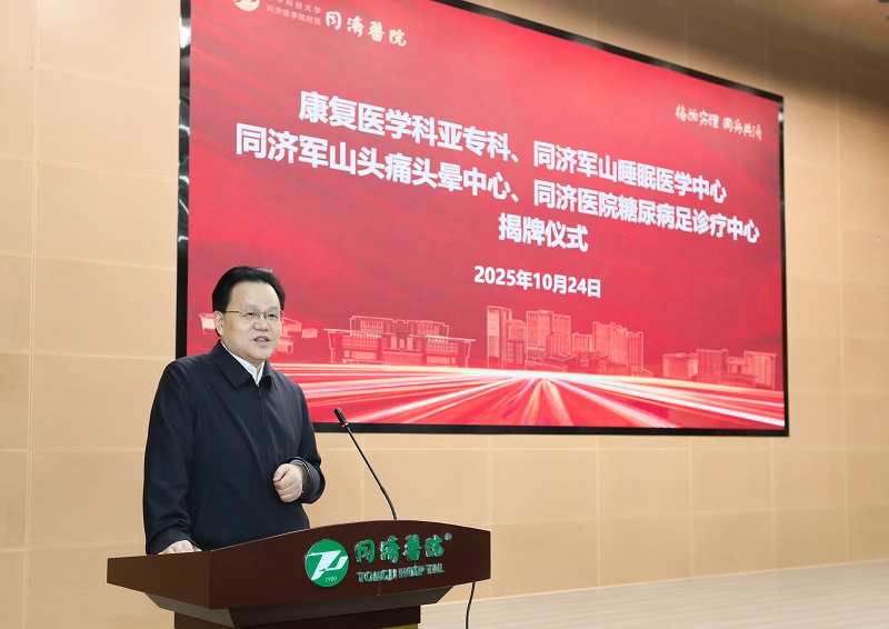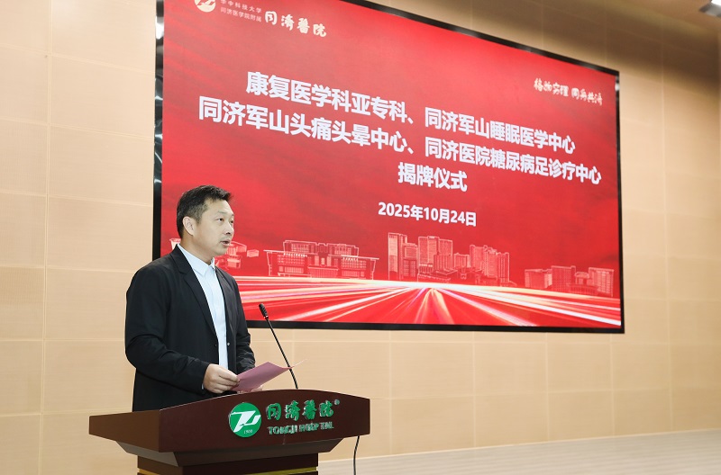10月24日上午,同济医院康复医学科亚专科及特色诊疗中心揭牌仪式在同济军山医院学术报告厅举行。同济医院党委书记唐洲平,党委副书记、院长胡俊波,副院长祝伟、祝文涛、陈刚、吴剑宏,院长助理涂宣成,总会计师戴小喆,同济军山医院执行院长郭东生、副院长许涛,康复医学科各亚专科,睡眠医学中心、头痛头晕中心和糖尿病足诊疗中心等三大中心主任,相关职能部门负责人及同济军山医院医护团队代表齐聚现场,共同见证学科建设与区域医疗发展的重要时刻。